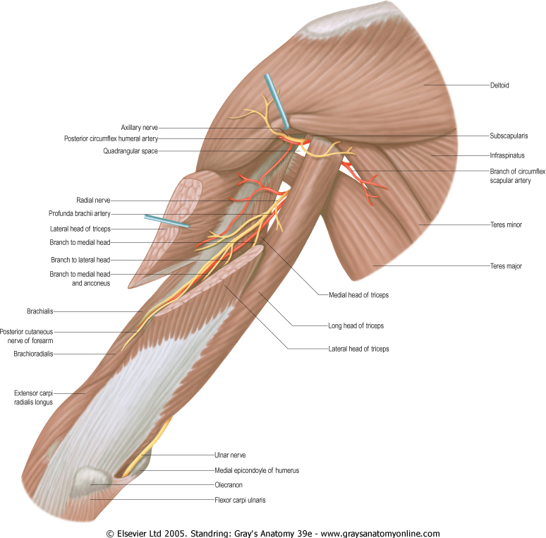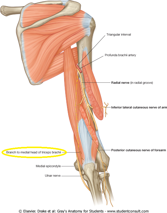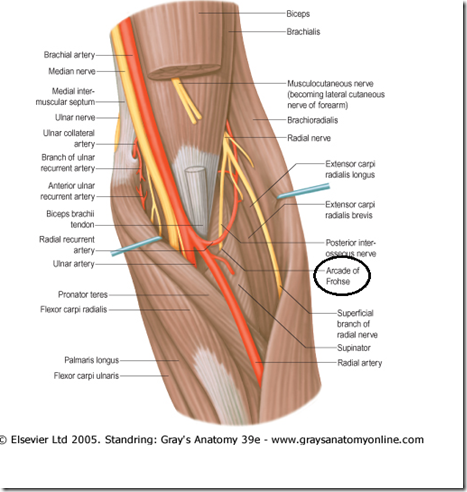 - the lateral margin of the long head of triceps brachii.