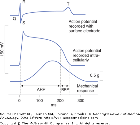 During phases 0 to 2 and about half of phase 3 (until the membrane potential reaches approximately –50 mV during repolarization), cardiac muscle cannot be excited again; that is, it is in its absolute refractory period. It remains relatively refractory until phase 4. Therefore, tetanus of the type seen in skeletal muscle cannot occur. Of course, tetanization of cardiac muscle for any length of time would have lethal consequences, and in this sense, the fact that cardiac muscle cannot be tetanized is a safety feature.