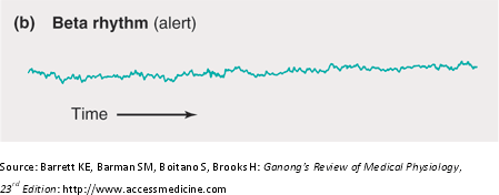EEG records showing the alpha and beta rhythms. When attention is focused on something, the 8–13 Hz alpha rhythm is replaced by an irregular 13–30 Hz low-voltage activity, the beta rhythm.EEG records showing the alpha and beta rhythms. When attention is focused on something, the 8–13 Hz alpha rhythm is replaced by an irregular 13–30 Hz low-voltage activity, the beta rhythm.